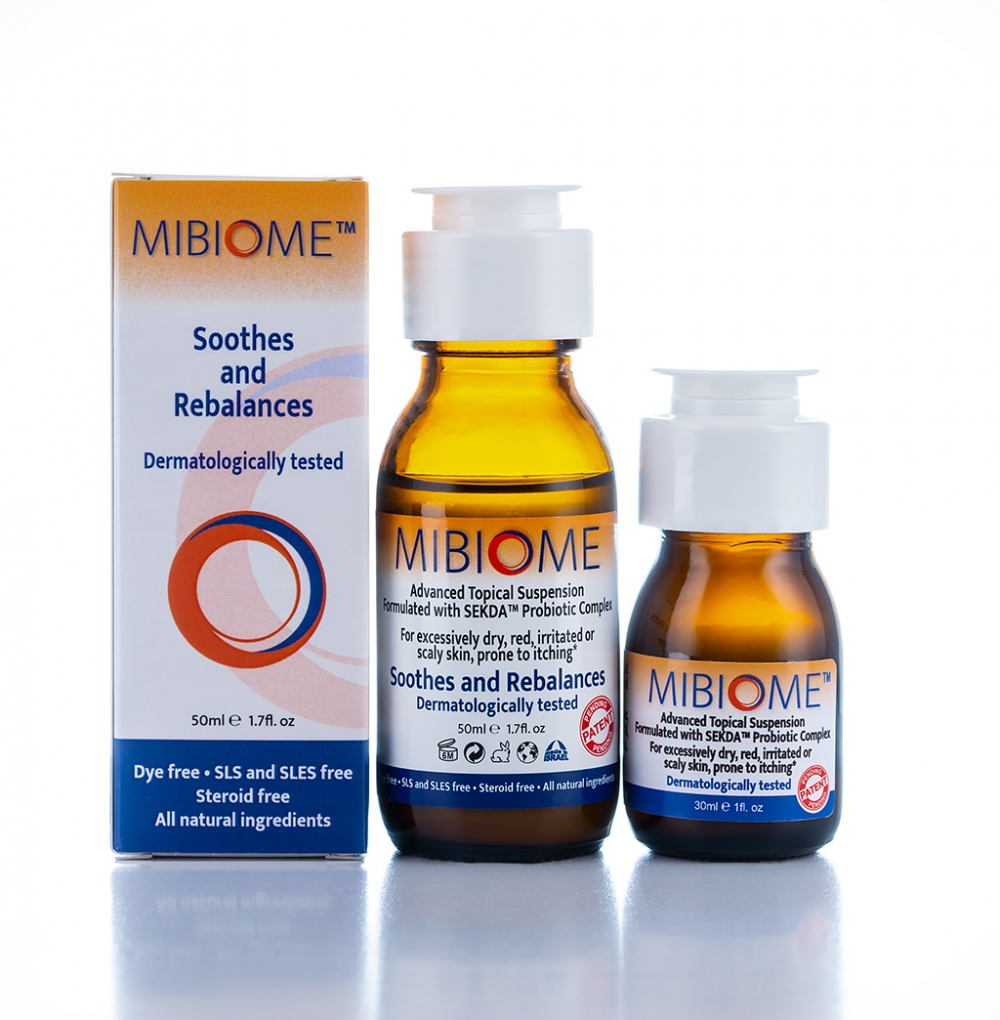 MIBIOME er en innovativ topikal formulering utviklet for å gjenopprette balansen i hudens naturlige mikrobiom